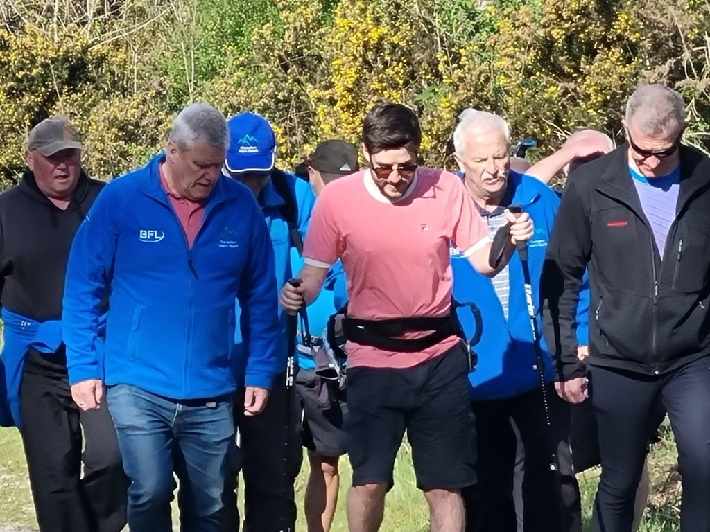 Michael wears a special belt with loops on so the other men can help support him on the more uneven trickier ground. Michael said, “We support and encourage each other when things get tough on the walks and when I said about the challenge to them we started training straight away. Pen y Fan is 886m above sea level and my aim is to raise £3 every metre so that’s £1 for each charity every metre, if I raise more than that it’ll be brilliant for each charity that help so many people.”