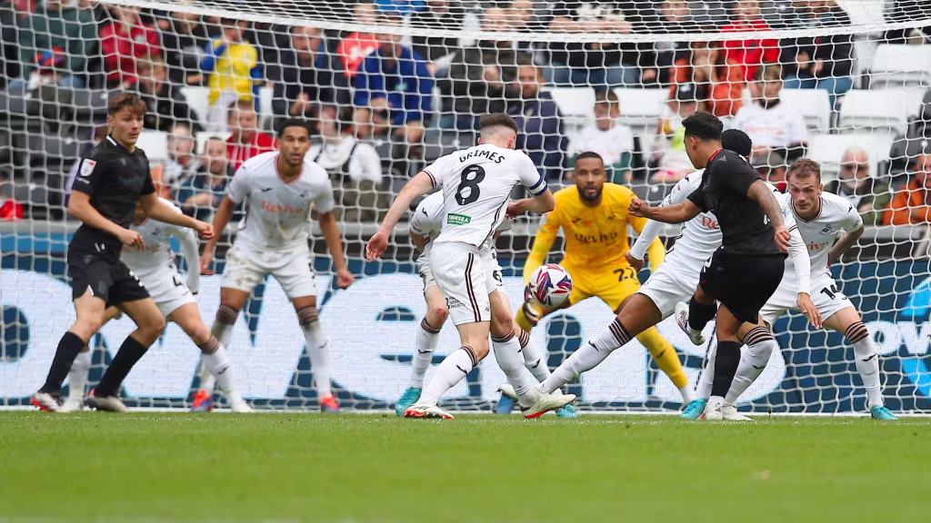The Swans would play with greater purpose and threat than in their previous two Championship encounters and would come near to breaking the deadlock minutes later.