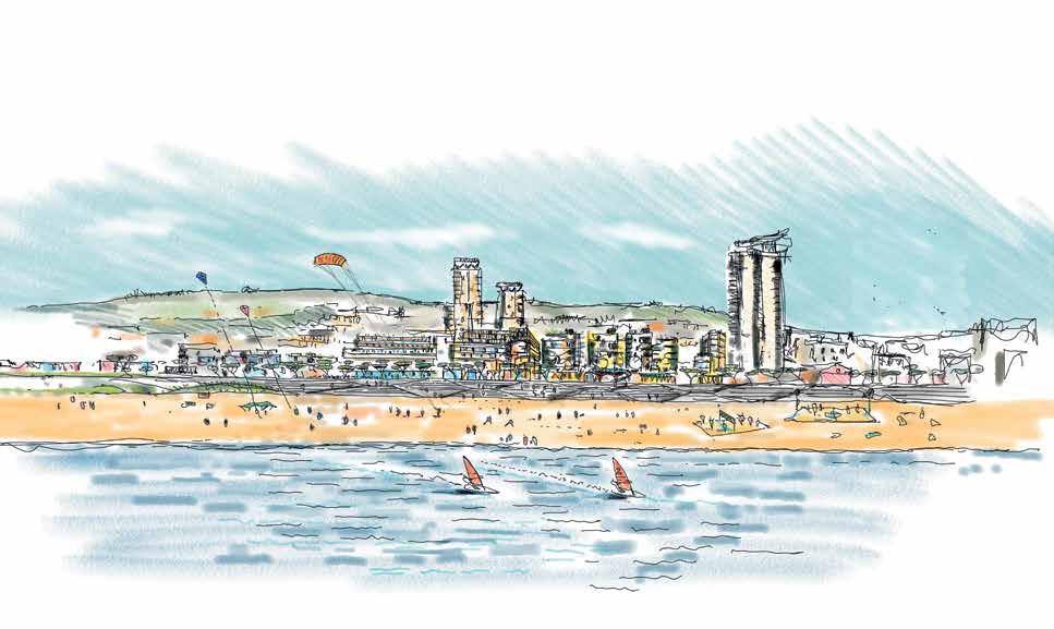 A new city waterfront district is being earmarked for the Civic Centre site. A mixed-use destination anchored by the beach is proposed, with new homes and a strong leisure and hospitality focus, generous civic spaces and plenty of greenery. Other proposals include a new walkway to the beach and a mix of permanent and seasonal uses and events to create an all-season visitor destination.