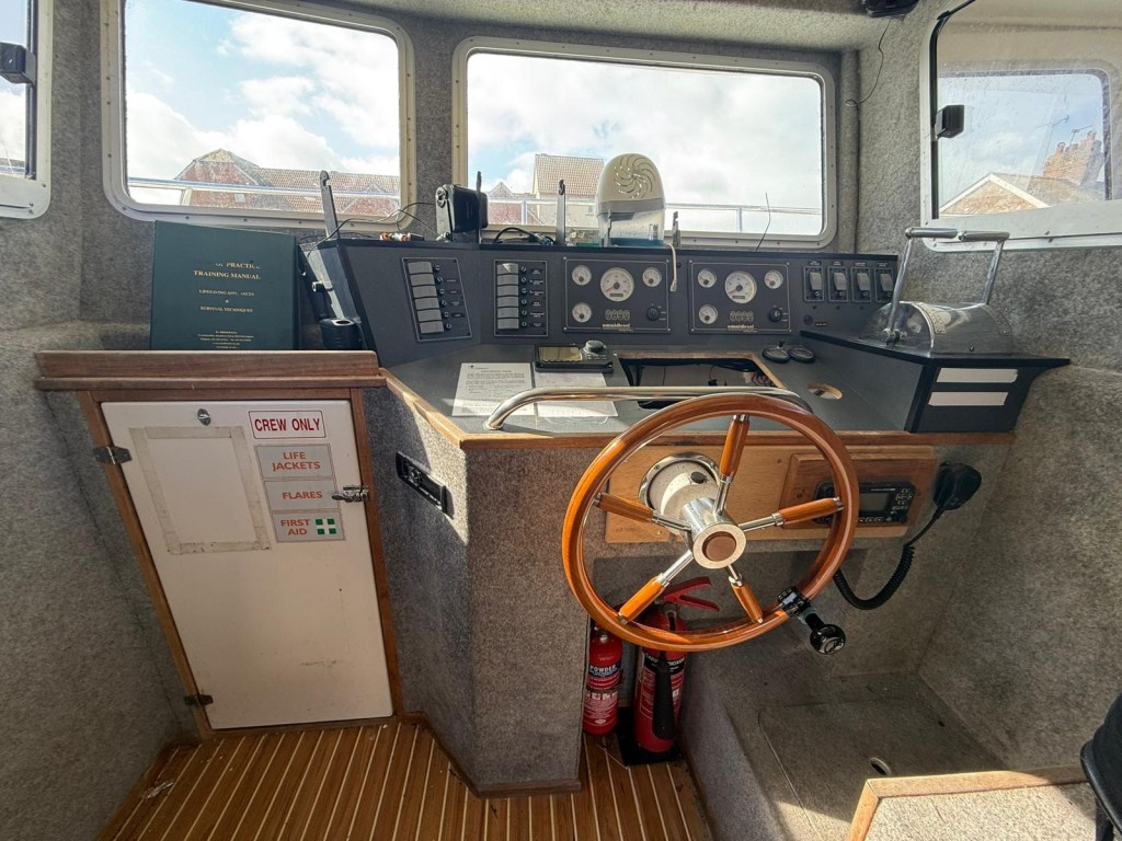 With a guide price of around £80,000, the fully equipped fishing catamaran comes with a commercial licence package, making it immediately operational for fishing or charter work.