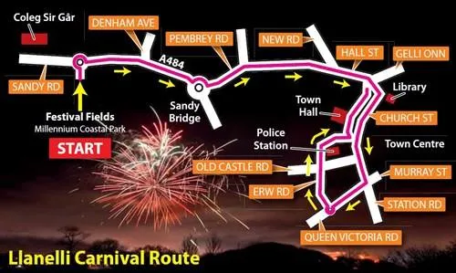 The carnival procession will leave Festival Fields, Pwll, at 6.15pm, taking its usual route and will arrive in town shortly after the Christmas lights switch-on at 6.45pm.