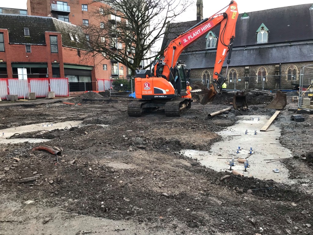 Construction is taking place close to Llys Dewi Sant, the church’s existing hall that is being removed as part of the Copr Bay transformation plans.