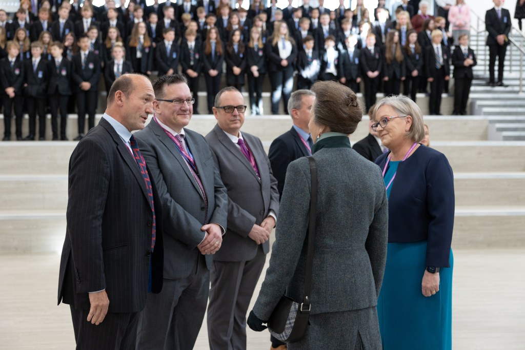The Princess Royal’s visit began with a guided tour of the £48.7million school by headteacher Jane Harries and head prefects Lucy Ashton, Niall Griffiths and Aimee Pettit, during which Her Royal Highness met students from various classes and chatted to them about their work.