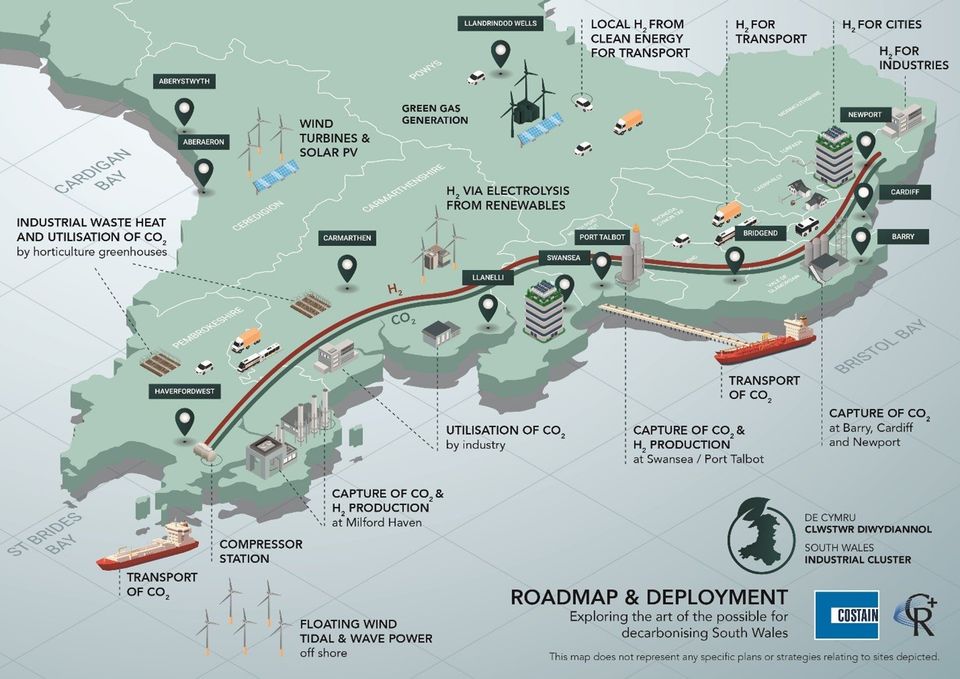 South Wales is the second largest industrial emitter of carbon dioxide in the UK. Last year the UK became the first country in the world to legislate that it will achieve net zero emissions by 2050. Net zero means that any remaining emissions are offset by using other means. This has also formed part of the UK Government’s industrial strategy.