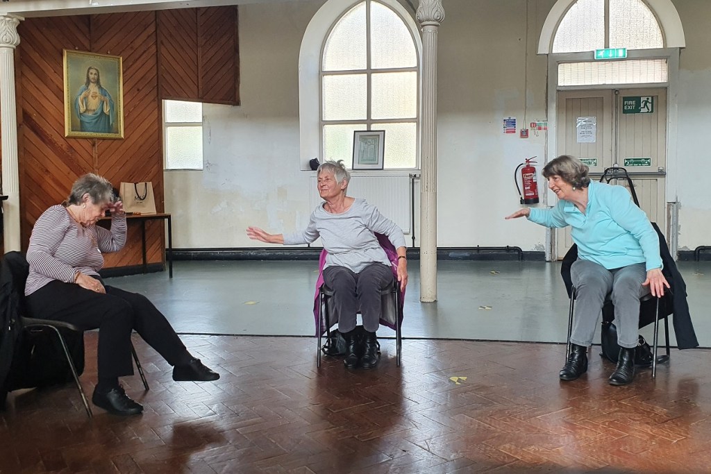 “We use the chairs quite a lot if someone is unsteady on their feet. They can still do a variation using the chair for support. We also do a standing variation if people are a little fitter or a little bit more able to push themselves further in the class.”