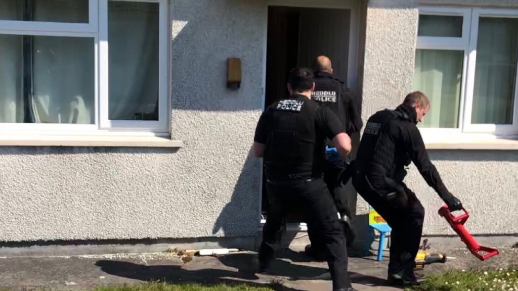 Dyfed Powys Police have released dramatic pictures of a raid at a property in Pembrey in Carmarthenshire where quantities of drugs and cash have been seized.