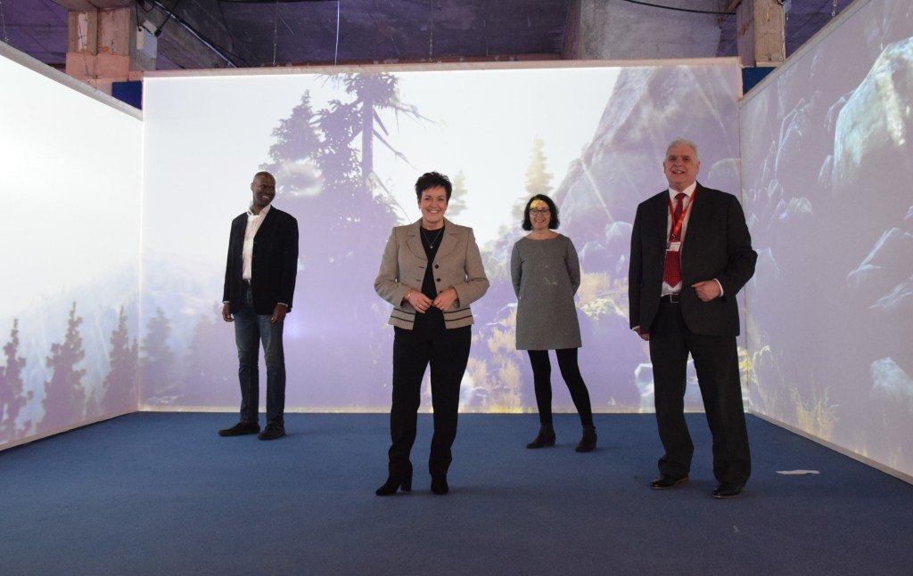 Lead image: (from left to right): Tunde Olatunji (PhD student at Swansea University’s computational foundry), Dawn Bowden (Welsh Government Deputy Minister for Arts & Skills), Tracey McNulty (Head of cultural services at Swansea Council), Cllr Robert Francis-Davies (Swansea Council’s Cabinet Member for Investment, Regeneration and Tourism). (Image: Swansea Council)