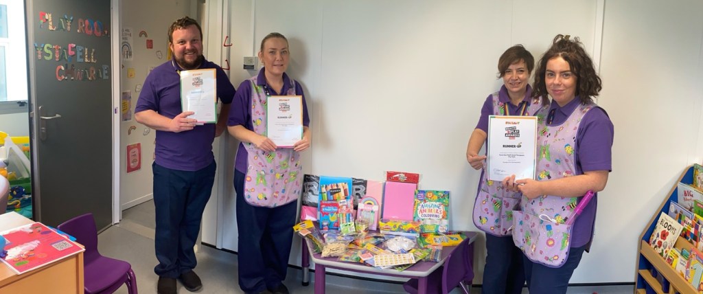 Hywel Dda University Health Board’s play teams at Glangwilli, Bronglais and Withybush hospitals have been recognised as runners up of Play Team of the Year at this year’s Starlight’s Health Play Awards.