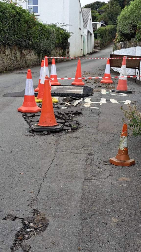 “We are at the scene of a sinkhole on the A4118, Port Eynon. The road is currently closed between St Cadoc’s Church and The Laurels.