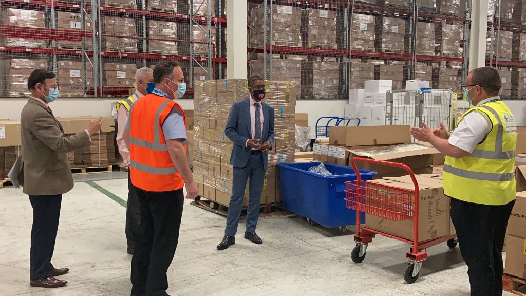 Health Minister Vaughan Gething and Chair of the Wales branch of the British Association of Physicians of Indian Origin (BAPIO) Professor Keshav Singhal visited the NHS Wales National Distribution Centre on Monday (10 May) to inspect the supplies.