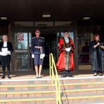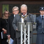 It was made by the High Sheriff of West Glamorgan Stephen H Rogers Esq JP in English and by Deputy Lord-Lieutenant Rowland Jones in Welsh in the presence of His Majesty’s Lord-Lieutenant of West Glamorgan, Louise Fleet CStJ JP, the Deputy Leader of Swansea Council Andrea Lewis, The Lord Mayor of the City and County of Swansea Mike Day and the Lord Mayor’s Chaplain Brian Farr.