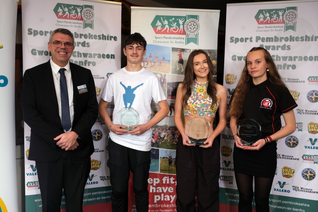 Pictured is winner Lucy Kerrison with finalists Elizabeth Clissold and Jack Newman and Steve Davis of Pembrokeshire Youth.