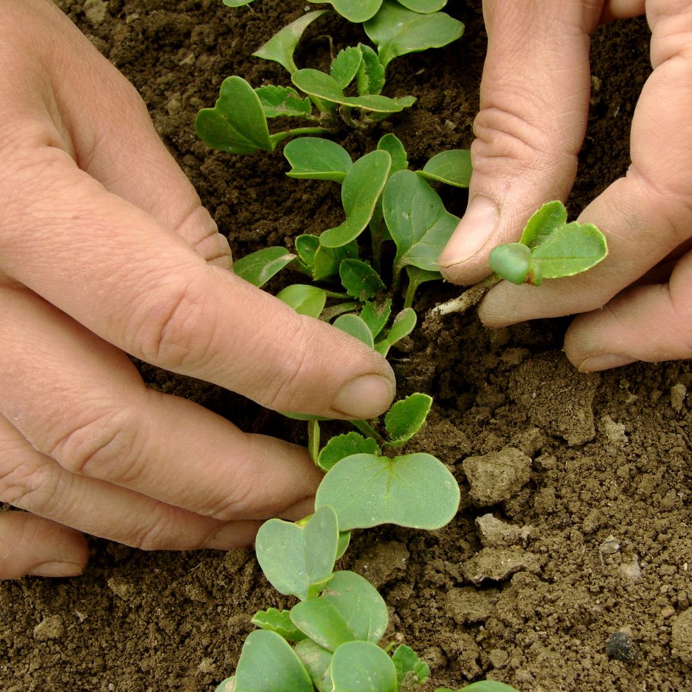 Thinning: This simply means removing seedlings when you have planted too many seeds in an area or pot. Each plant needs room and nutrients from the soil to grow healthy and strong, so overcrowding will result in seedlings competing for these. Thinning is typically done after seeds have germinated or seedlings have emerged and developed to achieve proper spacing between plants.