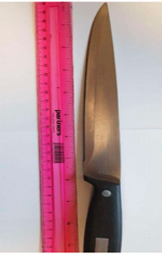 The suspect was put in handcuffs and searched, with officers finding a knife with an eight-inch blade wrapped in cloth, tucked into his underwear and concealed under his jacket.