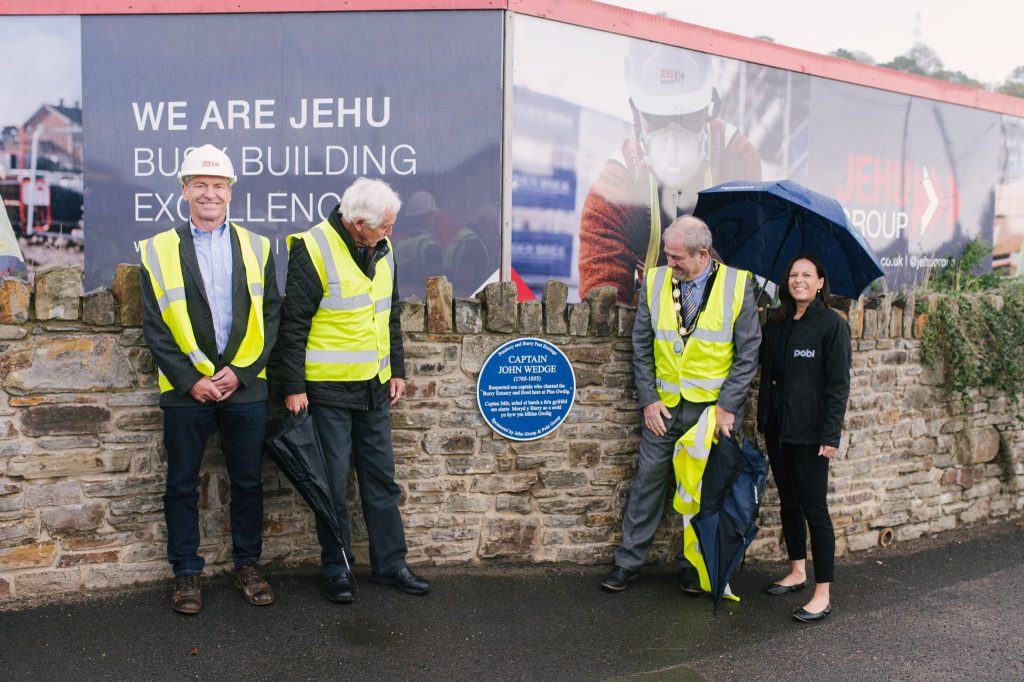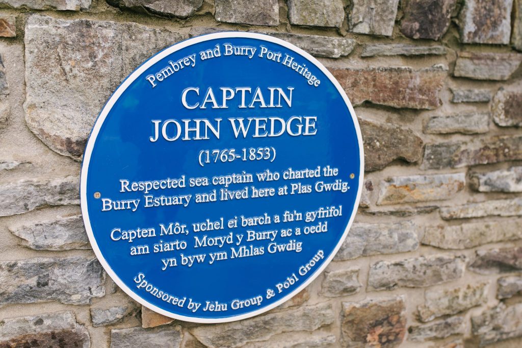 A blue plaque in honour of Captain John Wedge of Goodig has been unveiled at the Pen-y-Porth development in Burry Port, which is being built by contractors JEHU Group on behalf of housing group Pobl.