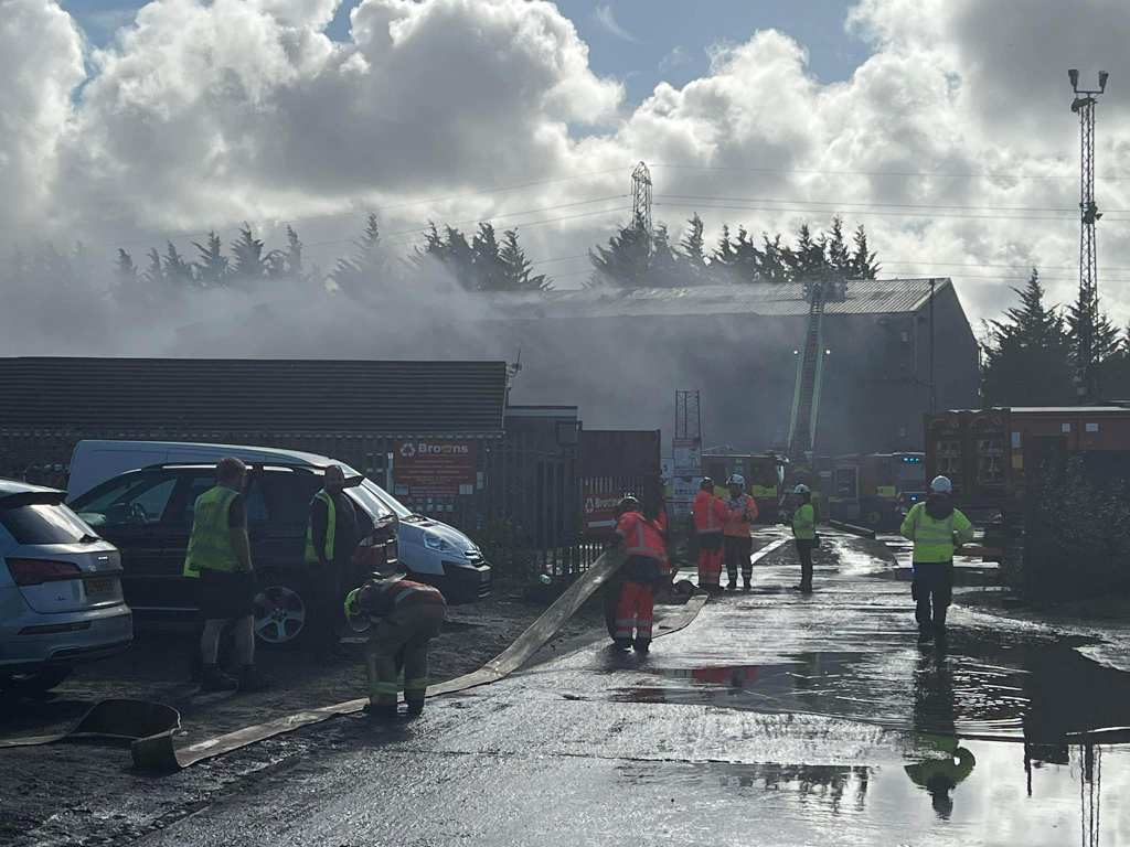 Nine fire appliances from Mid and West Wales Fire and Rescue Service are currently at a large recycling centre fire at Bynea in Carmarthenshire.