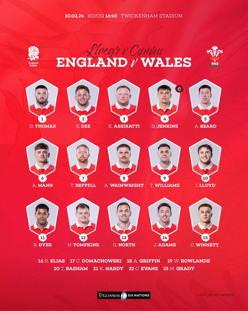 The replacements bench sees Racing 92’s Will Rowlands, Scarlets Keiron Hardy and Dragons duo Taine Basham and fly-half Cai Evans all make the 23 for the first time in the campaign, with Evans set to make his debut for Wales if introduced.