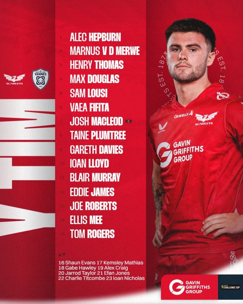 The Scarlets starting lineup shows five personnel changes with Wales international Tom Rogers taking his place at full-back having recovered from a groin issue. He is joined by Ellis Mee and Blair Murray in the back three.