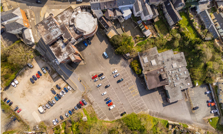 - a tarmacadam-laid public car park – once the site of the town’s former swimming pool but now demolished – and a small area of woodland adjoining Barn Street.