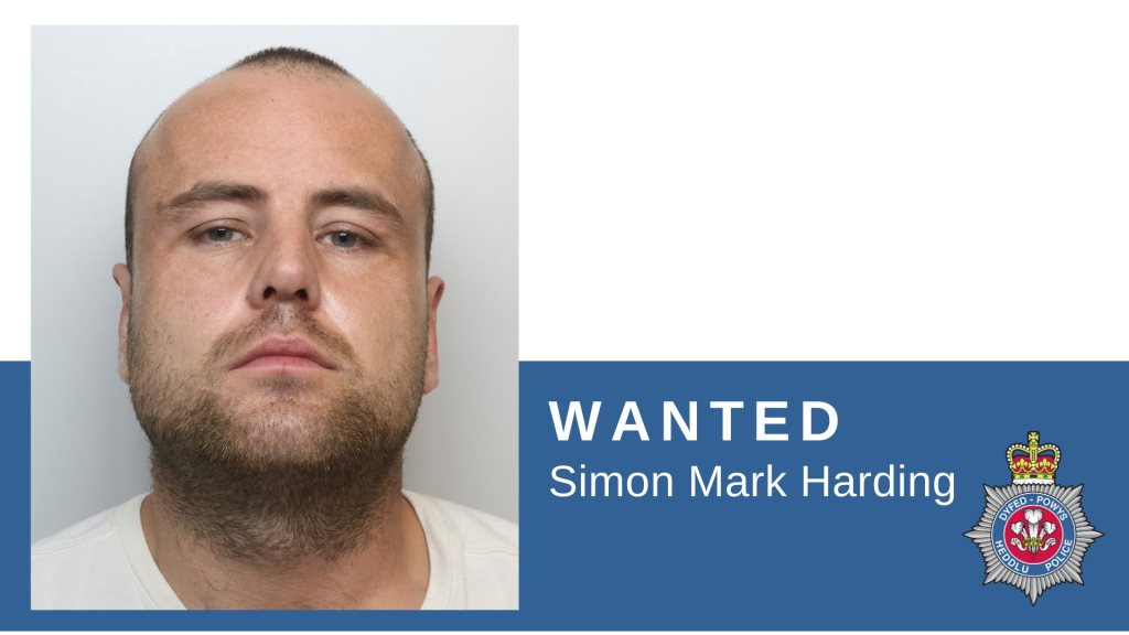 If you have information about where Simon Harding is, you can get in touch with Police quote reference DPP/4556/09/01/2021/02/C online at www.dyfed-powys.police.uk/contact by email at 101@dyfed-powys.pnn.police.uk or by calling 101.