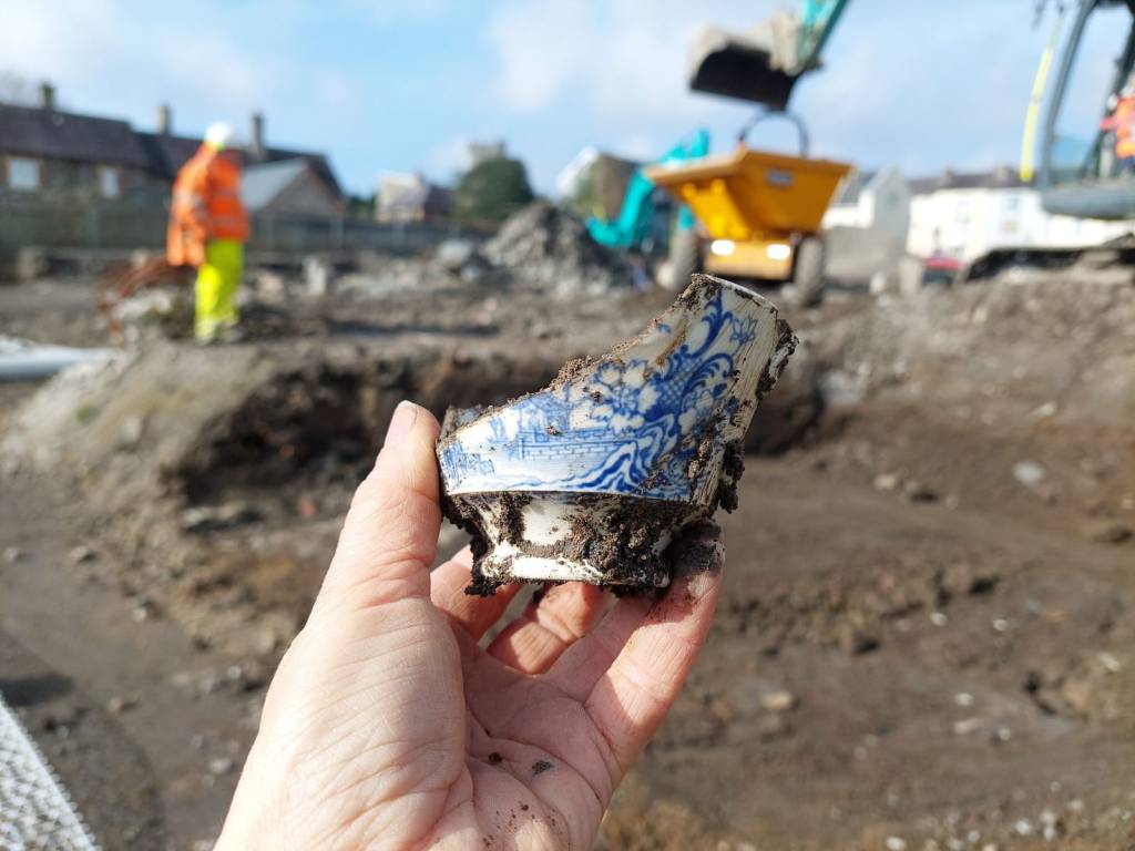 Other finds include roof tiles bearing the paw prints of cats and dogs — likely left while the clay was drying nearly two millennia ago — and later artefacts such as a Georgian or Victorian porcelain figurine, a 19th-century stoneware beer bottle, and a teacup.