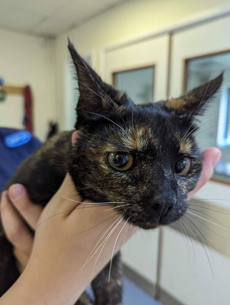 The Tortoiseshell cat is now at RSPCA Merthyr Tydfil Veterinary Clinic.
