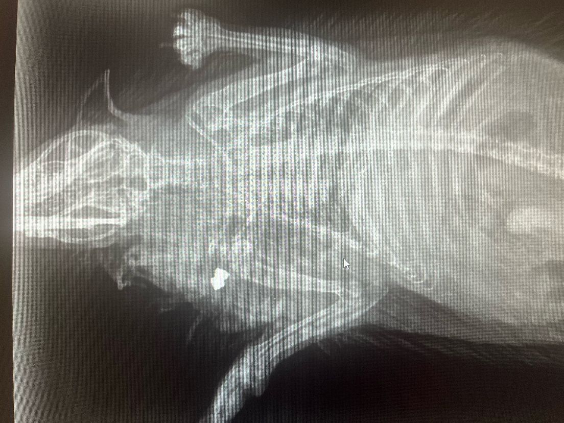 “The pellet missed his head and caught the shoulder,” said Ginny, “There was no bone injury but the impact had dislocated his shoulder.”