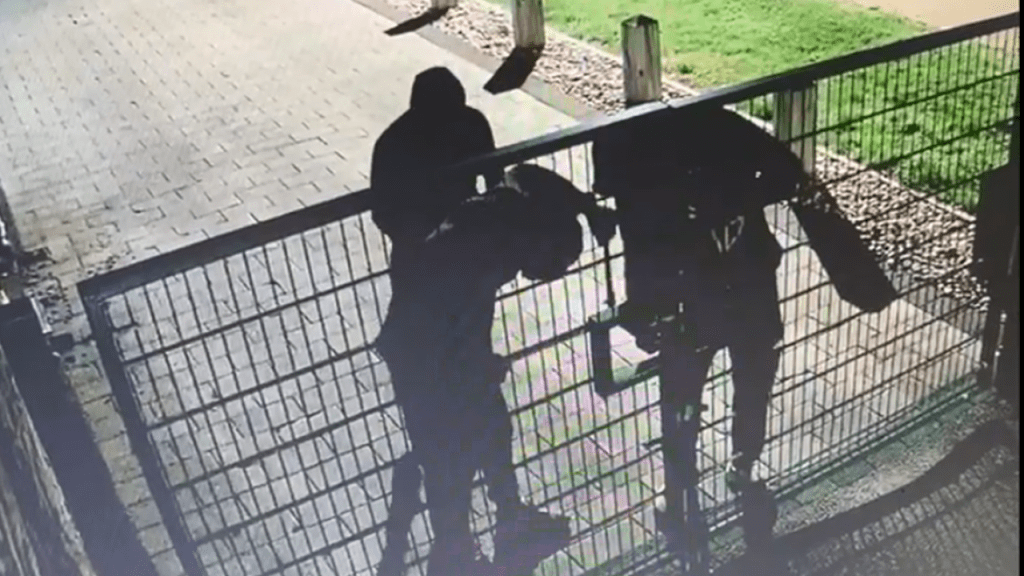 “At 4.20am man 1 comes back plus 2 other men wearing dark tracksuits carrying rope & bolt cutters to get through our gates.
