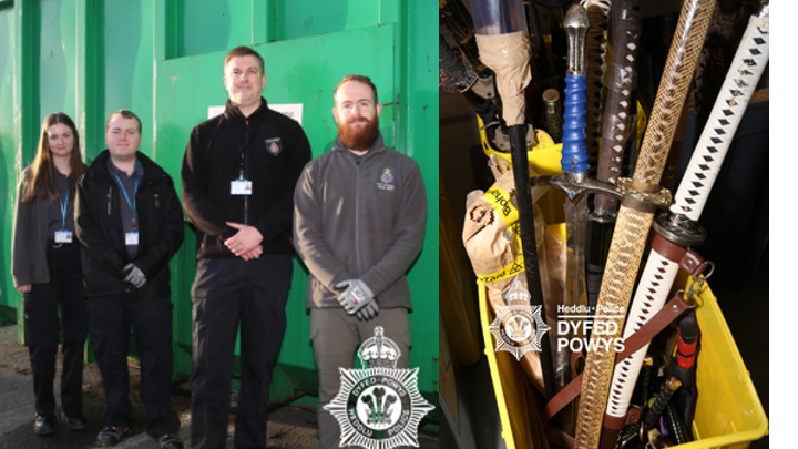 The collaboration between Dyfed-Powys Police and waste management company Cwm Environmental ensures seized knives are safely and responsibly destroyed.