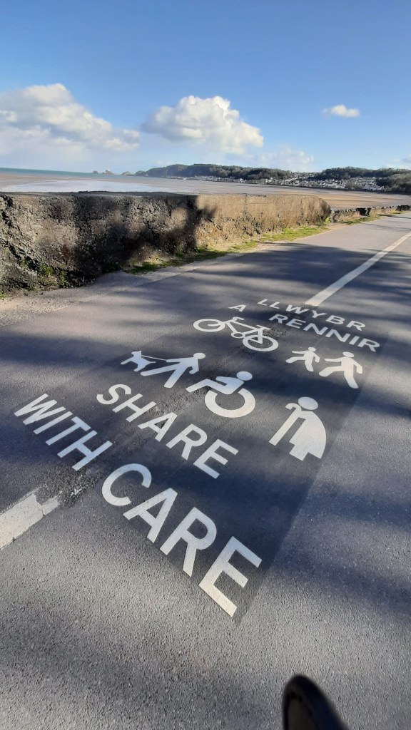 Visitors to the busy Swansea prom by West Cross, for example, will already have noted ‘Share with Care’ signs painted on the path loved by cyclists, dog-walkers and families alike.