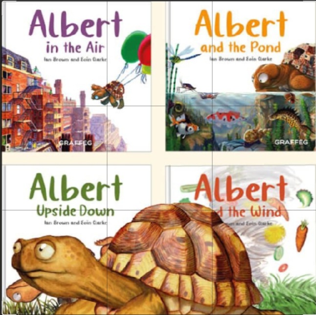 The event features other Albert the tortoise titles like Albert and the Wind, Albert Supersize, Albert in the Air, Albert and the Pond, Albert and the Shed and a board book for first readers called Albert and His Friends.