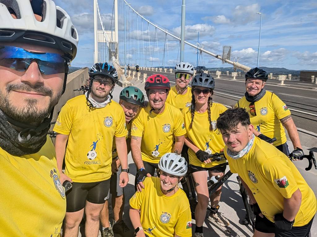 The cyclists were representing Margam Youth Centre Inclusion Stags, a team which promotes playing football for children with learning difficulties, physical difficulties, Cerebral Palsy, Autism, Downs Syndrome and children with low self-esteem and are the only club in Wales to provide framed football for children with mobility issues.
