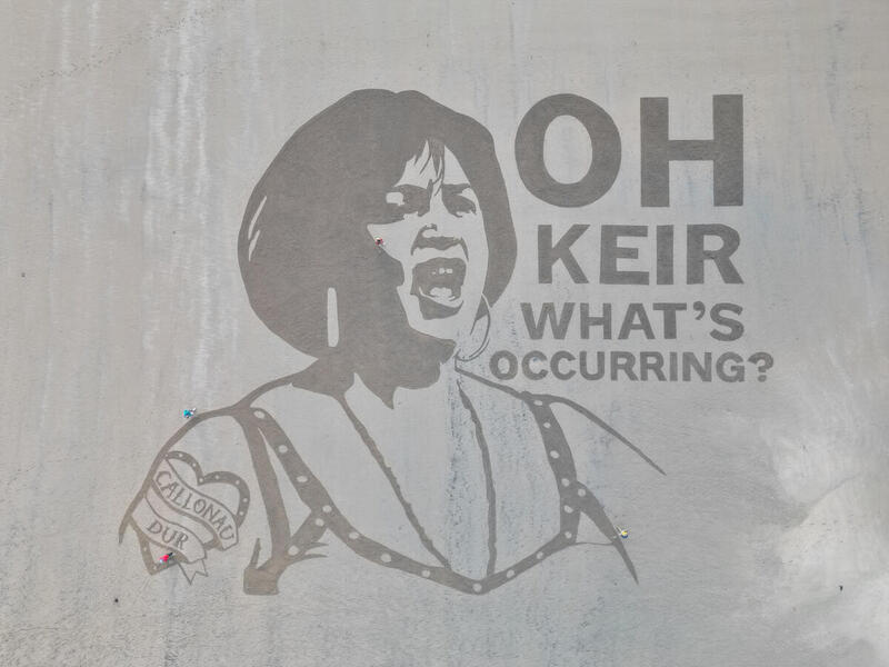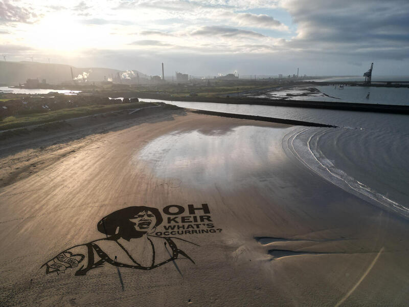 The enormous artwork, which is half the length of a football pitch, portrays the character, Nessa asking the Prime Minister, “Oh Keir, what’s occurring?” to send Starmer a message about the future of UK steel.