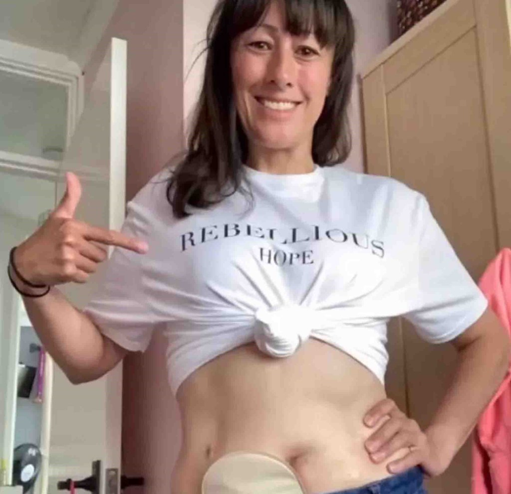 This May she underwent colorectal surgery to attempt to remove the tumour and fit a colostomy which left her with a stoma (ileostomy) bag.