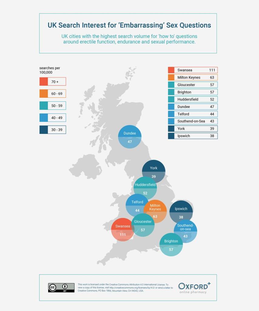 With that in mind, Oxford Online Pharmacy conducted a study to discover which UK city has the highest volume of searches for common questions related to erectile function, sexual performance and endurance.