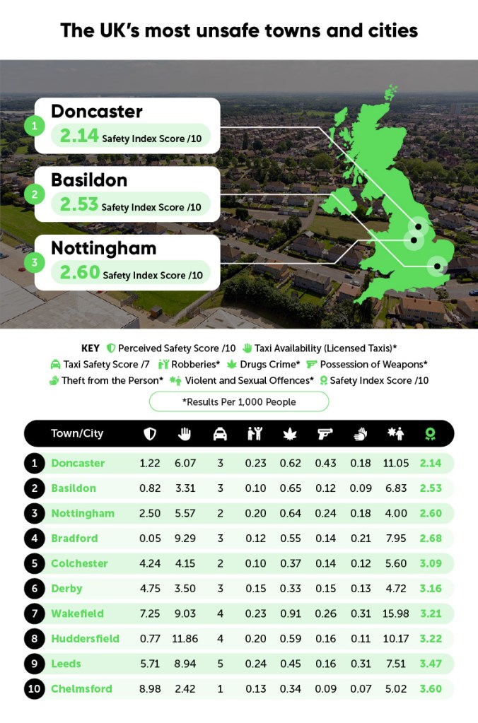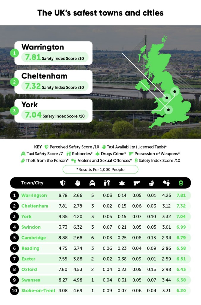 Training company Get Licensed looked at factors including how safe the location feels to locals, how safe it is to get a taxi, as well as crime statistics for drugs, weapon and violent offences.
