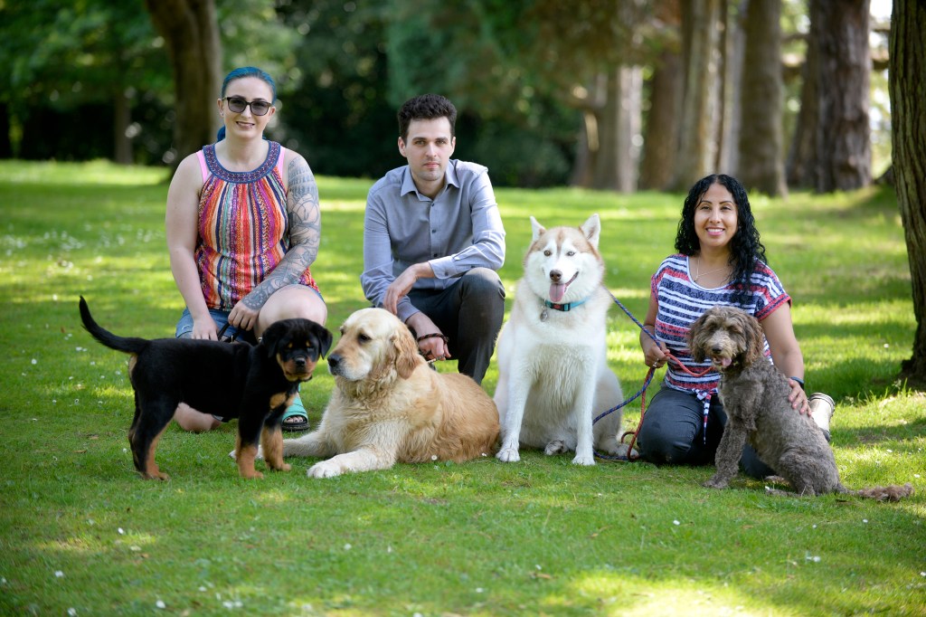 Lead image: Dogs Roam Free at Clyne Gardens in Swansea: From left Trustees Crystal Boyce and Jamie Evans and charity founder Dr Ameera Brett