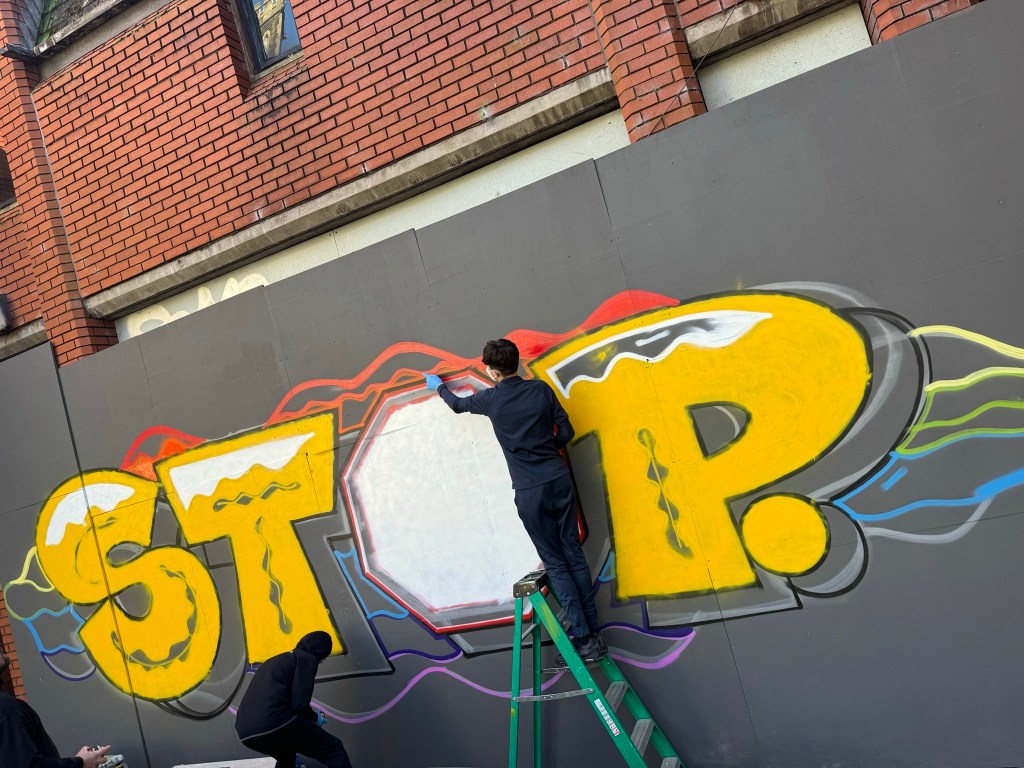 The pupils worked with the ‘Flip the Streets’ project to design and create the artwork on temporary hoardings at the St David’s Centre while it waits for redevelopment.
