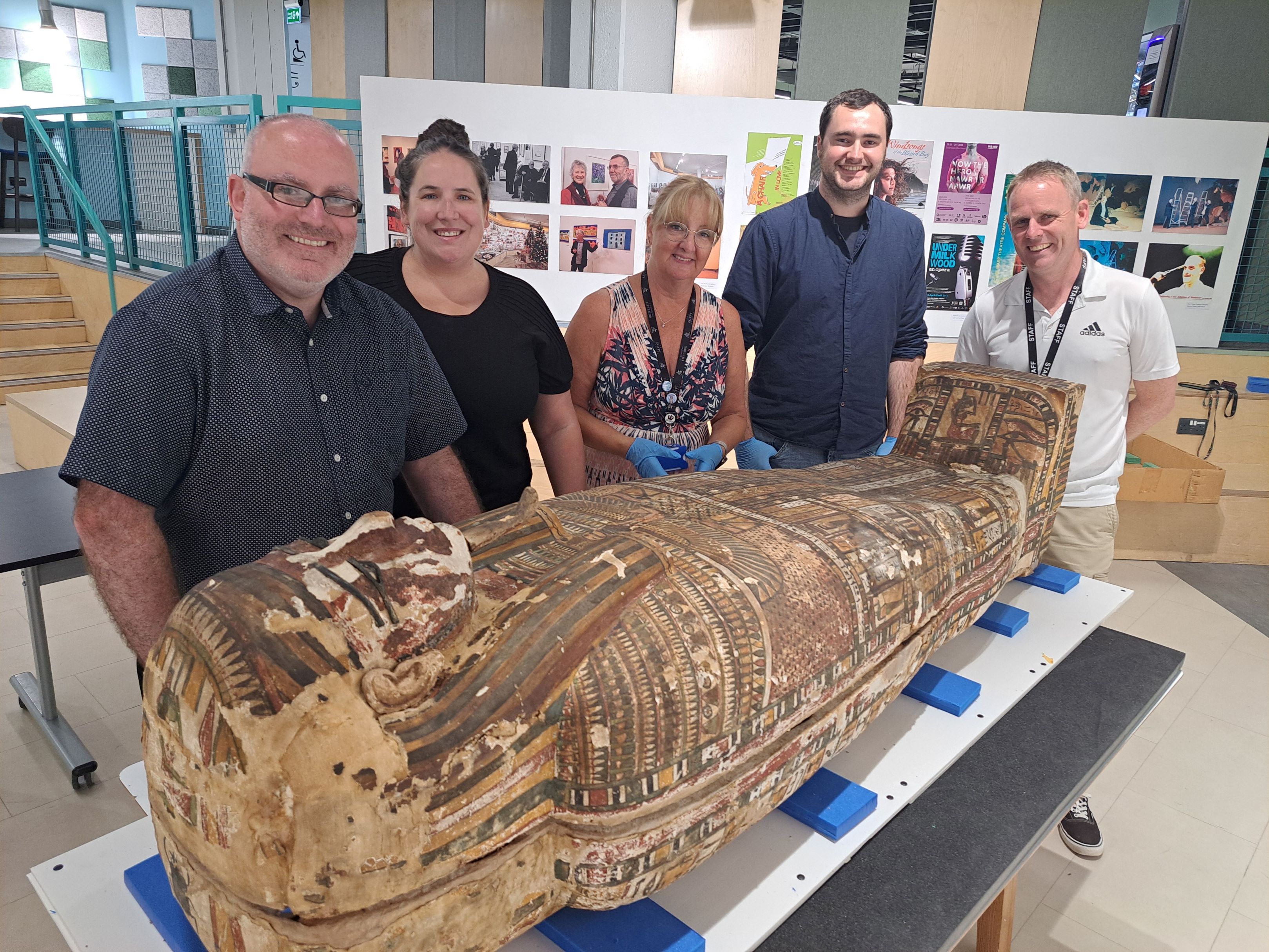 An ancient Egyptian coffin has returned to Swansea after a painstaking 26-year…