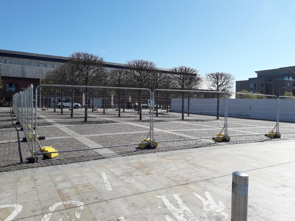 Temporary railings have been installed at Ice House Square in SA1 in Swansea which the council say are to help prevent mass gatherings in the area and keep people safe.