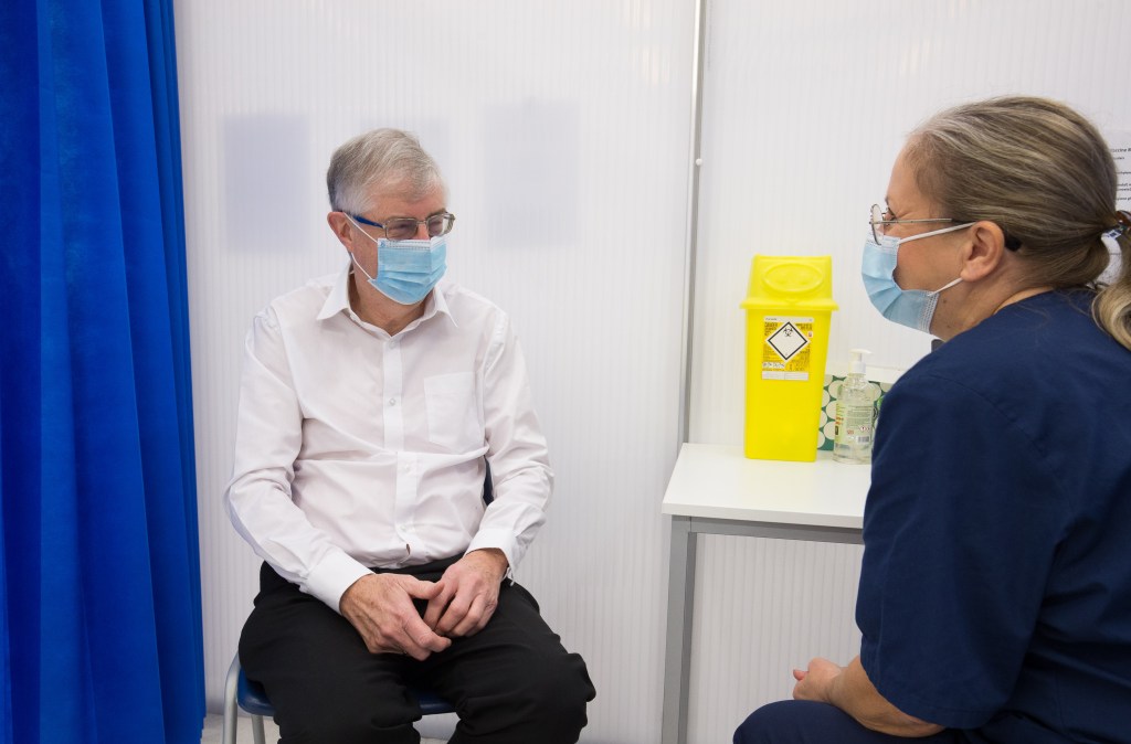The First Minister of Wales Mark Drakeford has today received his Covid-19 booster vaccine at the Bayside Mass Vaccination Centre in Cardiff Bay.