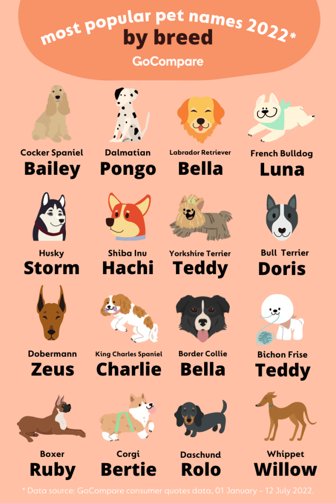 The comparison experts at GoCompare pet insurance have looked at consumer data to reveal the most popular pet names for different dog breeds this year.